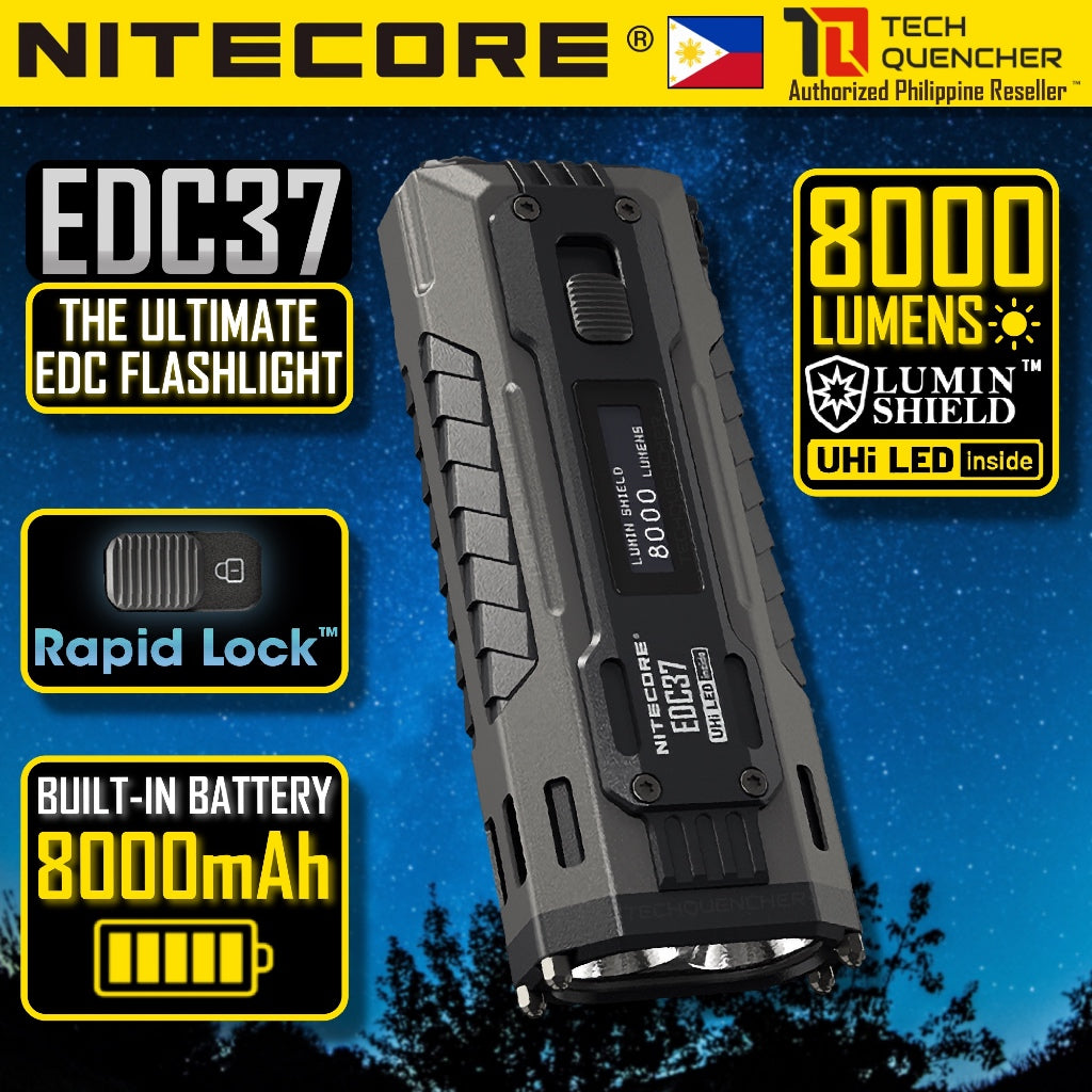 Nitecore EDC37 Flashlight - 8000 Lumens - Lumin Shield - 8000mAh Battery -Lock Switch- USB-C -STROBE