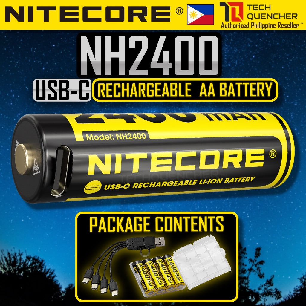 Nitecore NH2400 AA Battery - USB-C - 2400mAh Rechargeable AA Battery with Split Charging Cable