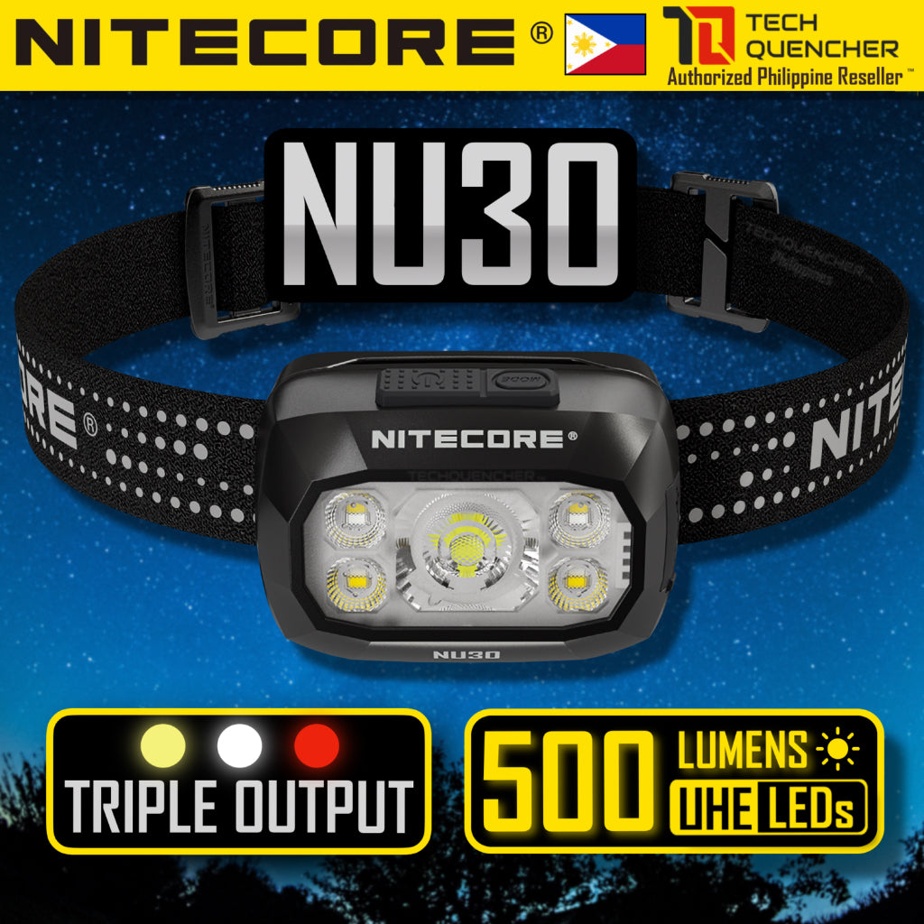 Nitecore NU30 Headlamp 500 Lumens- USB-C Rechargeable 1500mAh Battery - 3 Light Sources - IP66 - UHE