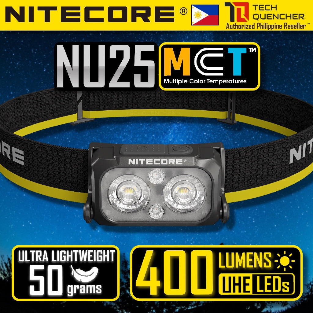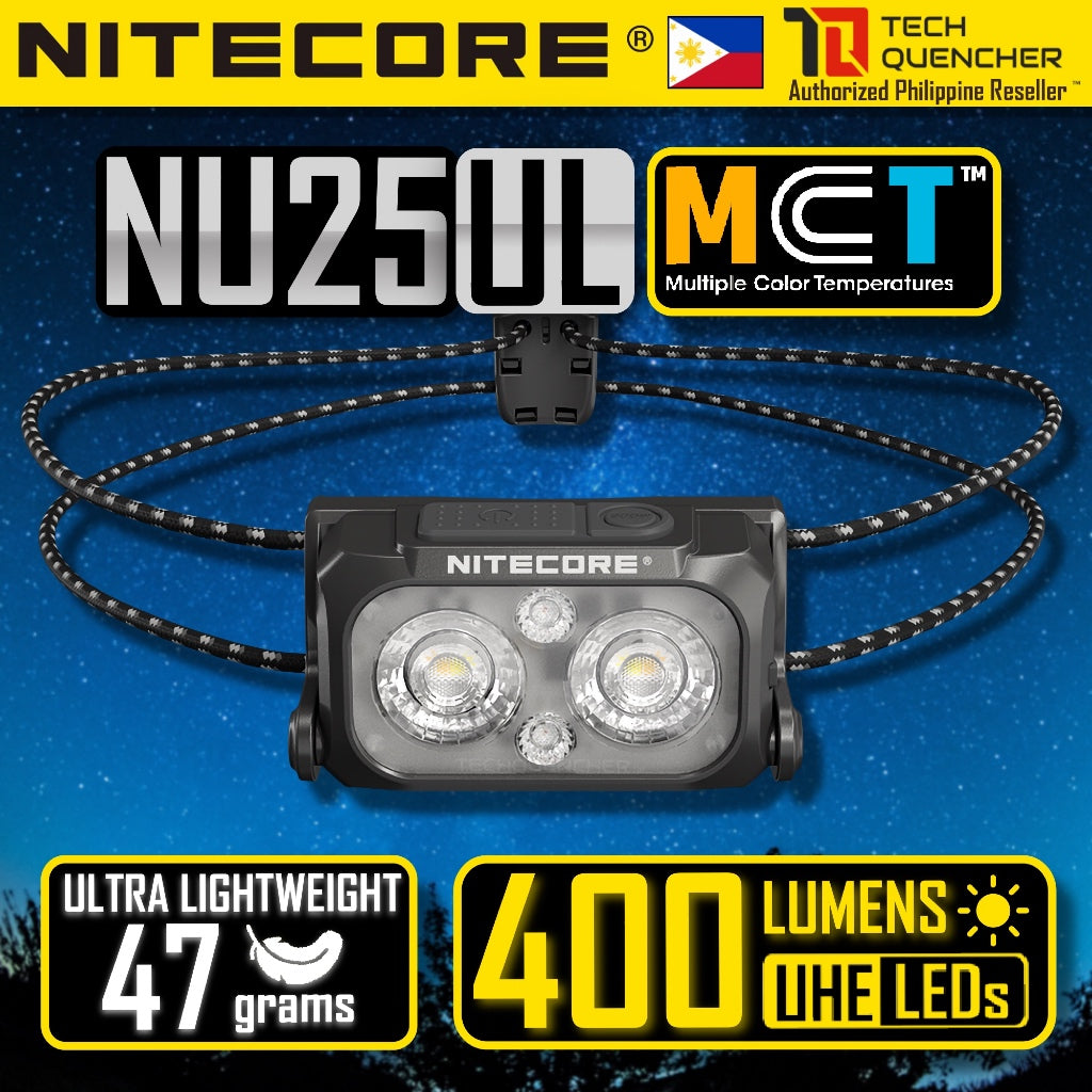 Nitecore NU25 UL MCT Headlamp 400 Lumens - Lightweight 47g - USB-C Rechargeable Battery - UHE - IP66