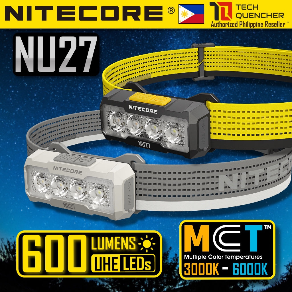 Nitecore NU27 Headlamp - 600 Lumens - Multiple Color Temperatures - Diffusing Sack - 56g - IP66