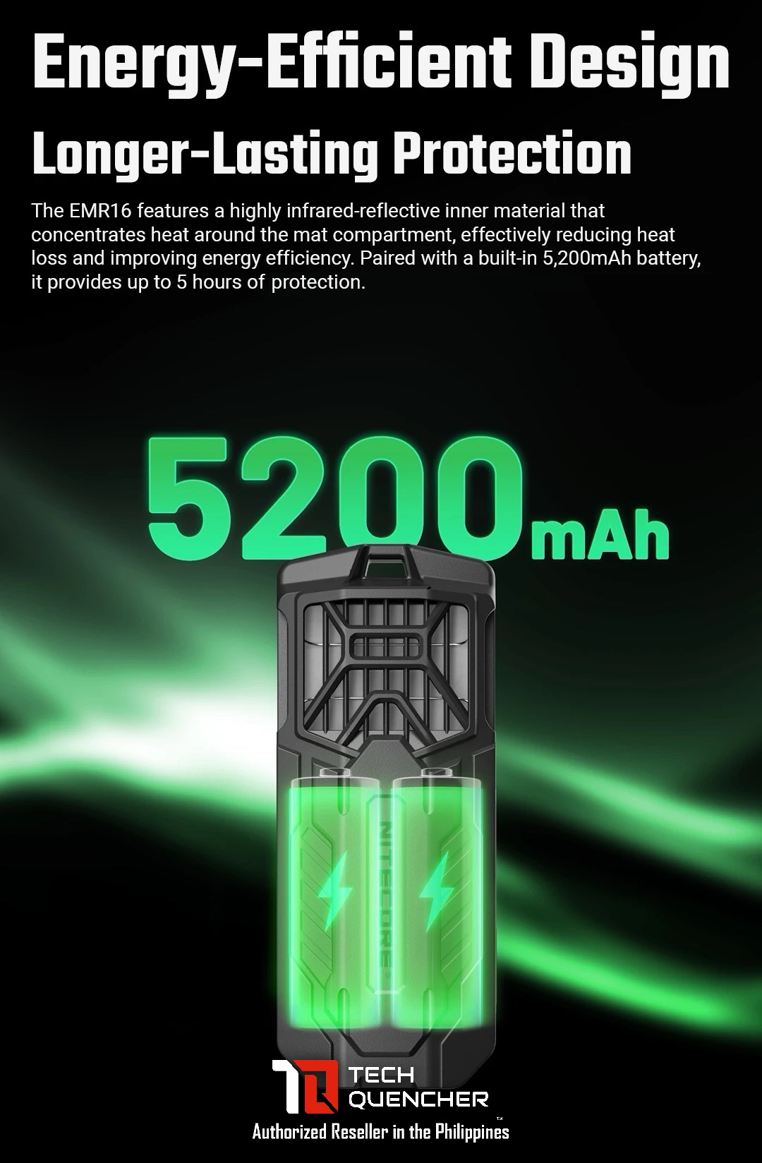 ***Energy-Efficient Design Longer-Lasting Protection-The EMR16 features a highly infrared-reflective inner material that concentrates heat around the mat compartment, effectively reducing heat loss and improving energy efficiency. Paired with a built-in 5,200mAh battery, it provides up to 5 hours of protection.