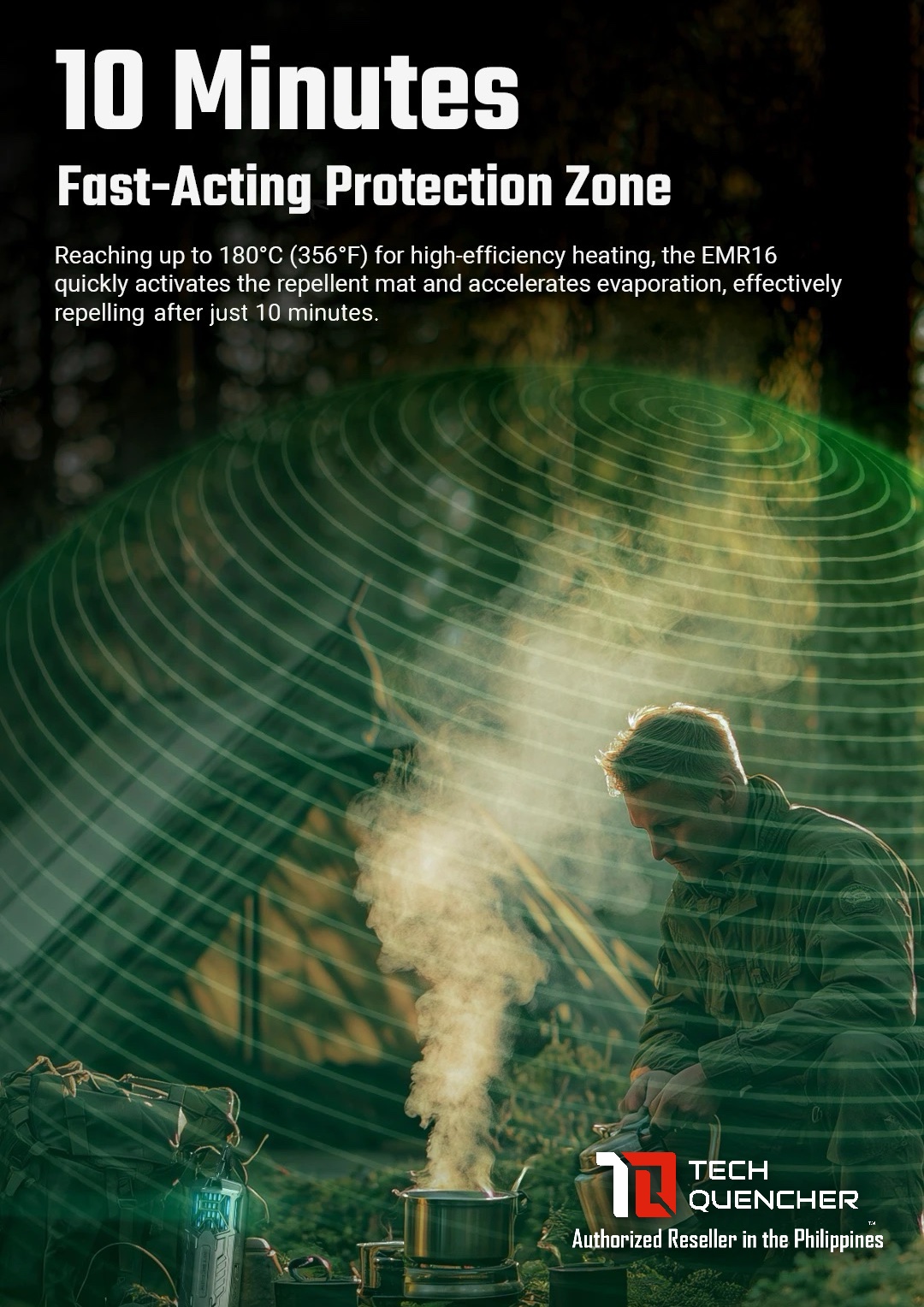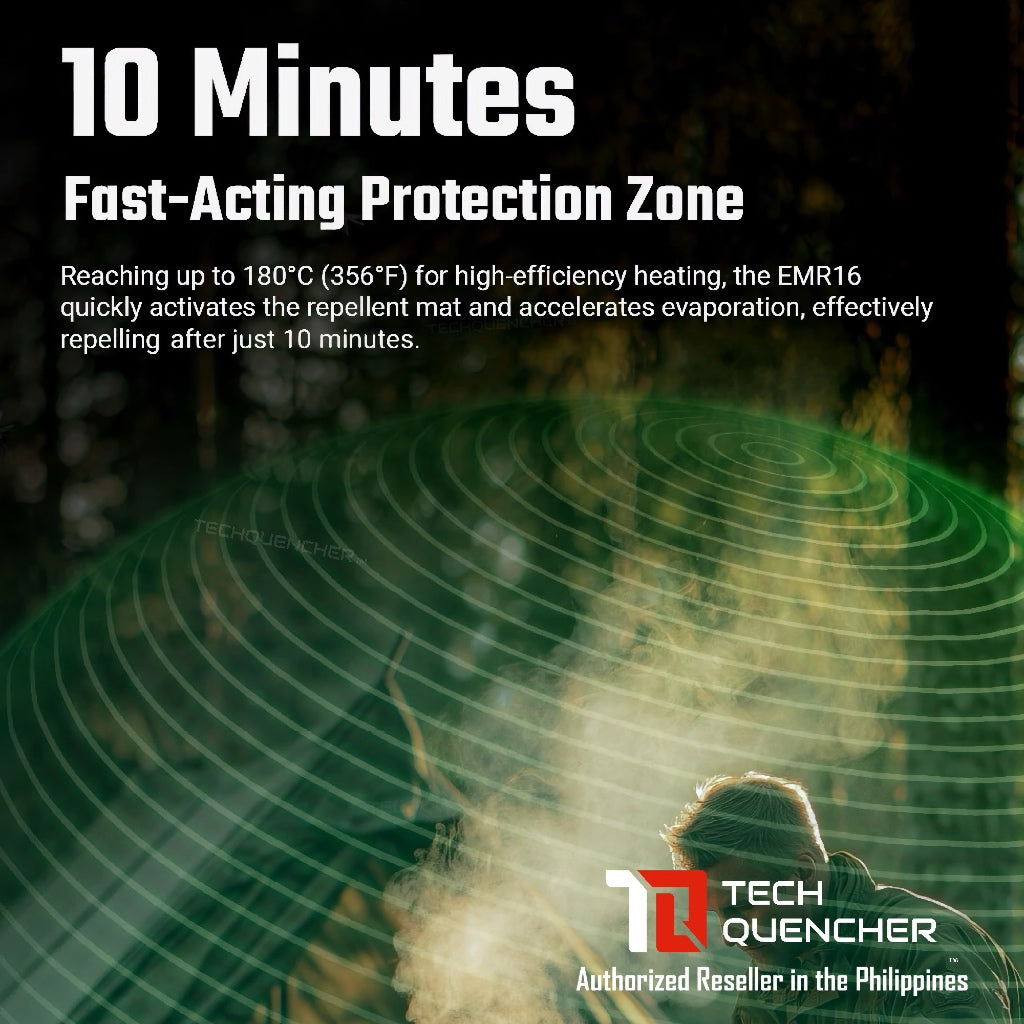 ***10 Minutes Fast-Acting Protection Zone-Reaching up to 180°C (356°F) for high-efficiency heating, the EMR16 quickly activates the repellent mat and accelerates evaporation, effectively repelling after just 10 minutes.