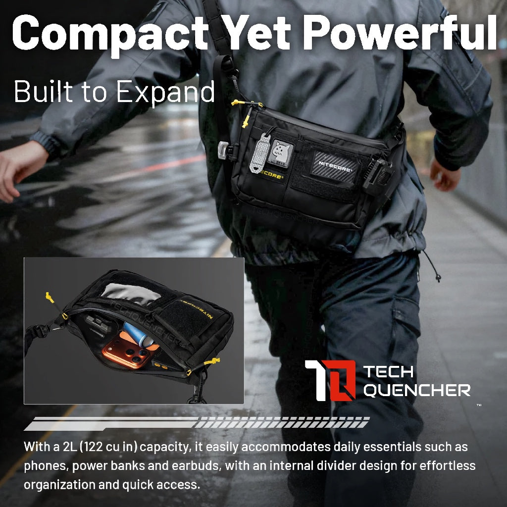 ***Compact Yet Powerful-With a 2L (122 cu in) capacity, it easily accommodates daily essentials such as phones, power banks and earbuds, with an internal divider design for effortless organization and quick access.