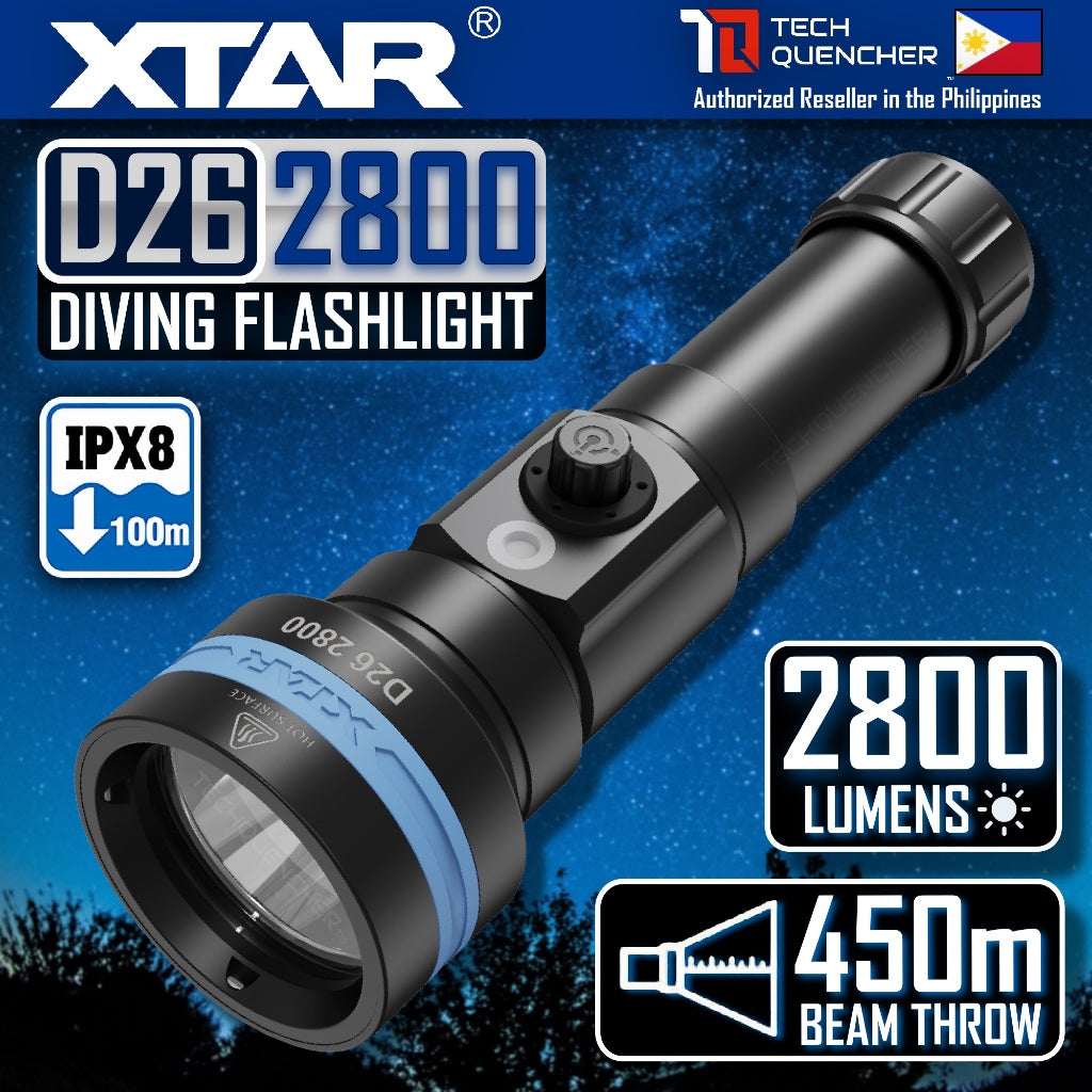 XTAR D26 2800 Diving Flashlight - 2800 Lumens - 450 meters- 5000mAh Rechargeable 21700 USB-C Battery