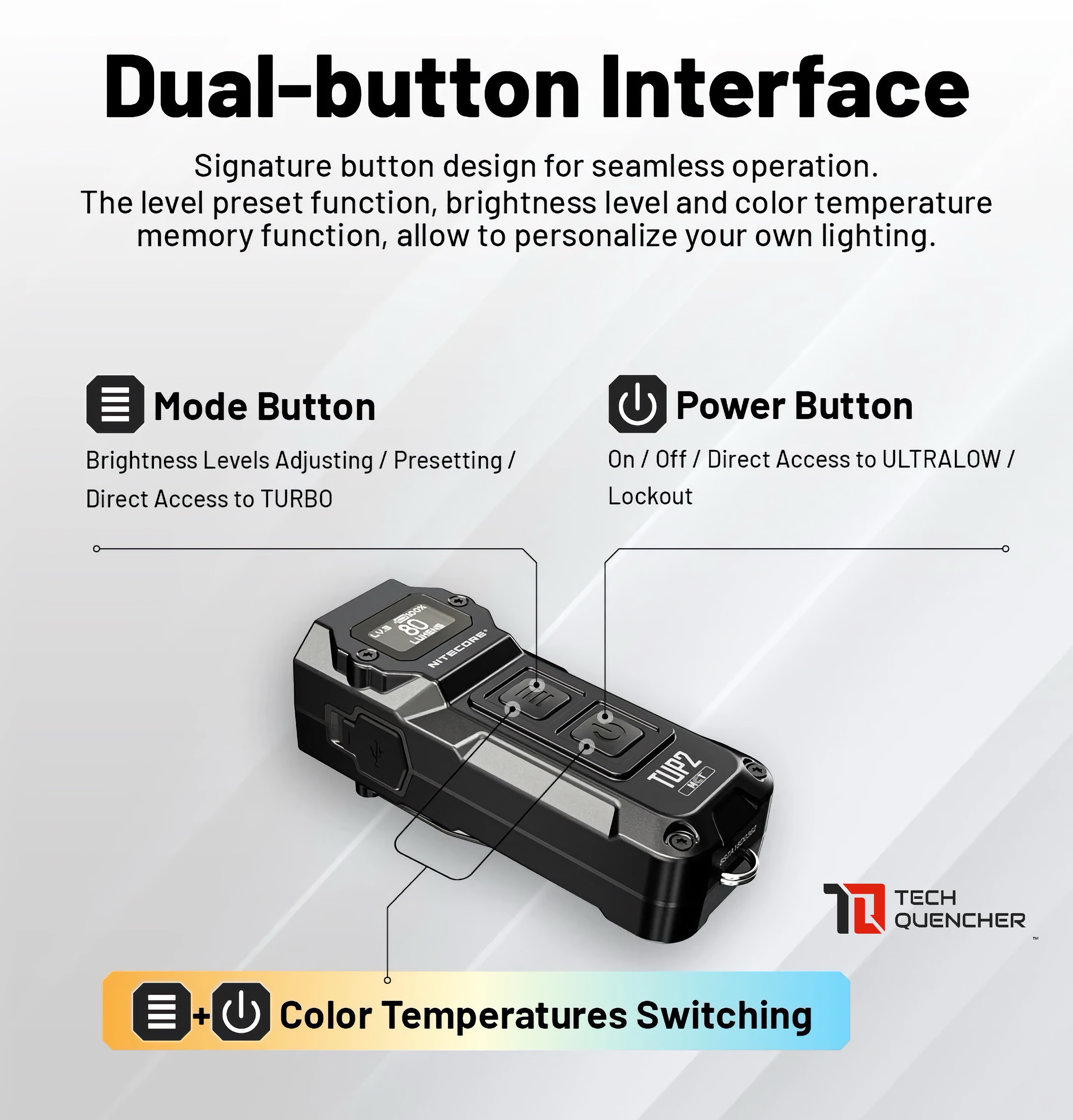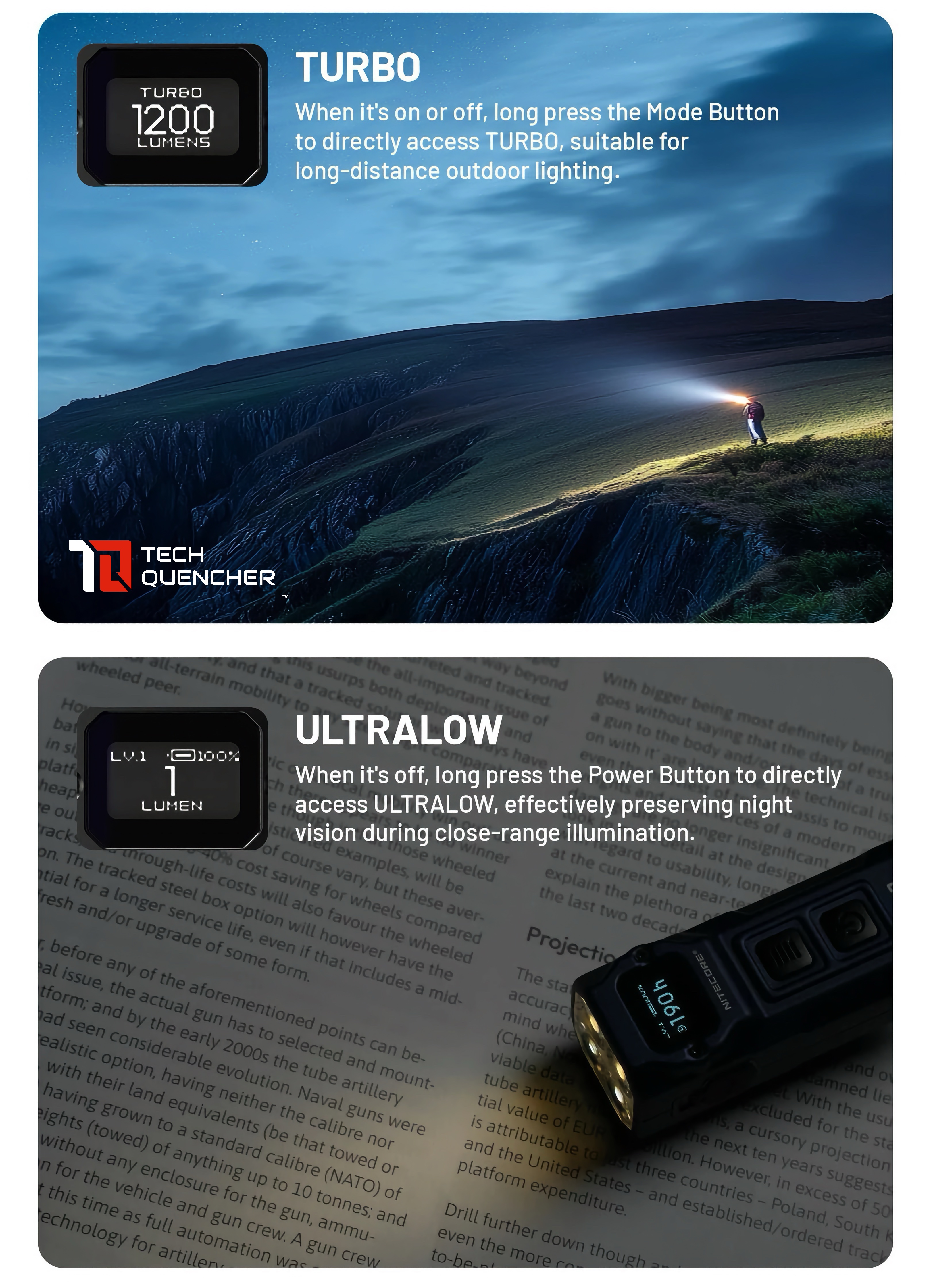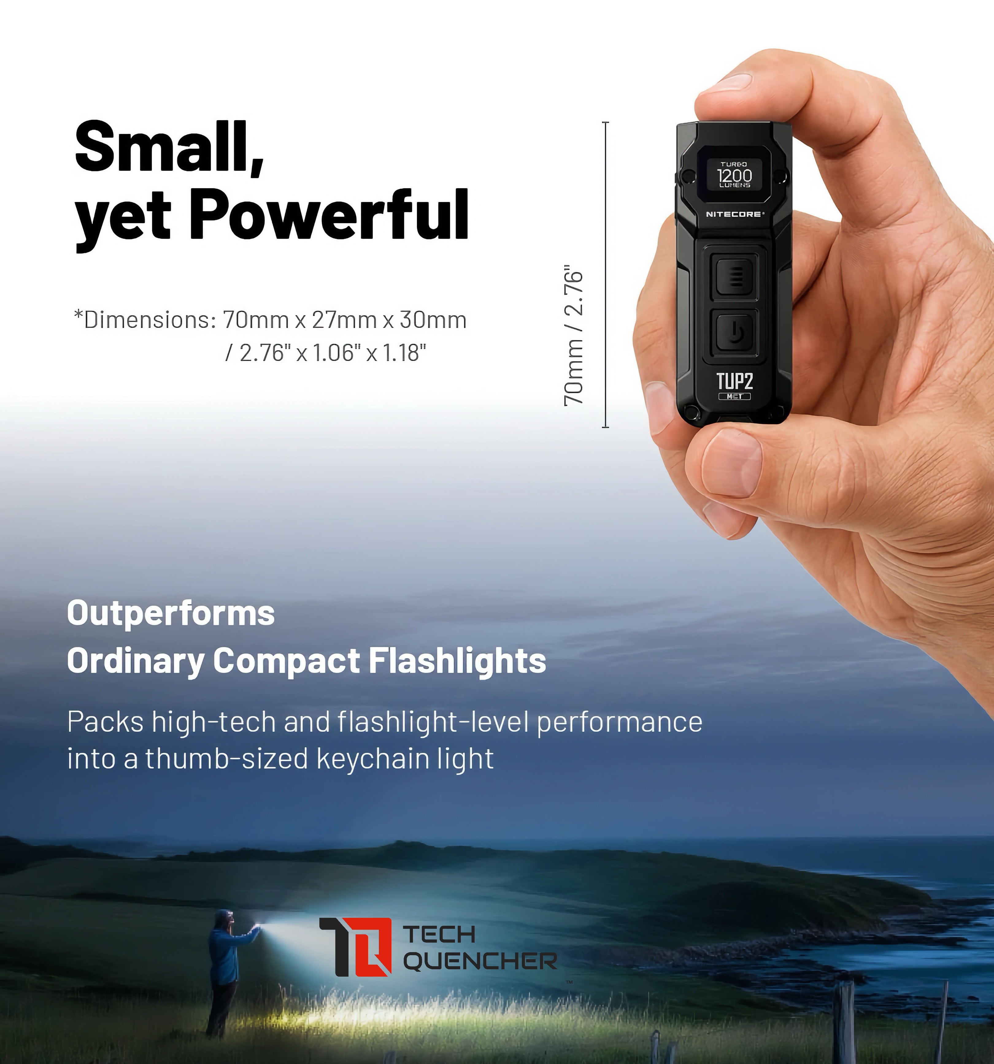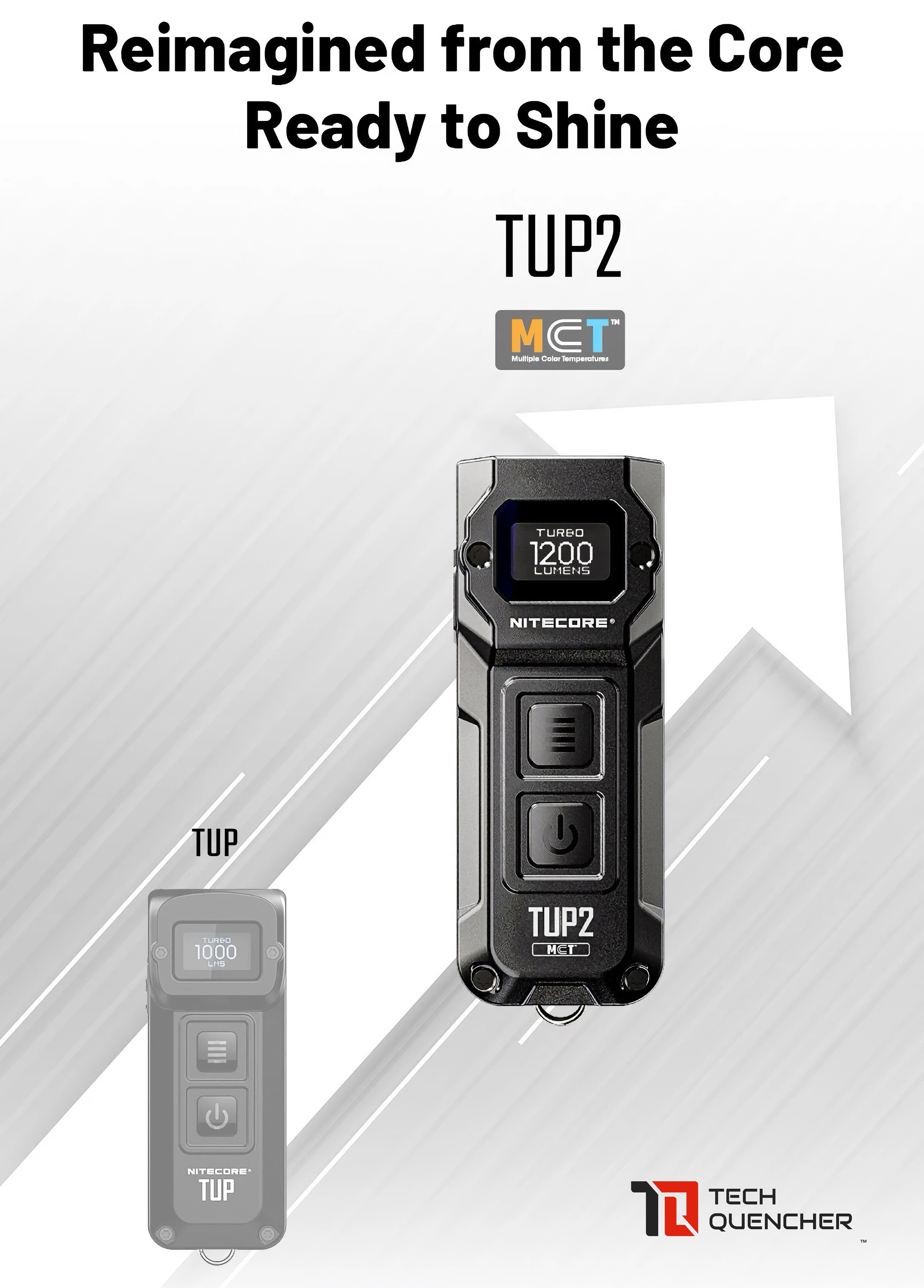 Nitecore TUP2 Keychain Flashlight - 1200 Lumens - OLED Display - USB-C Charging - 58g - MCT UHE LEDS