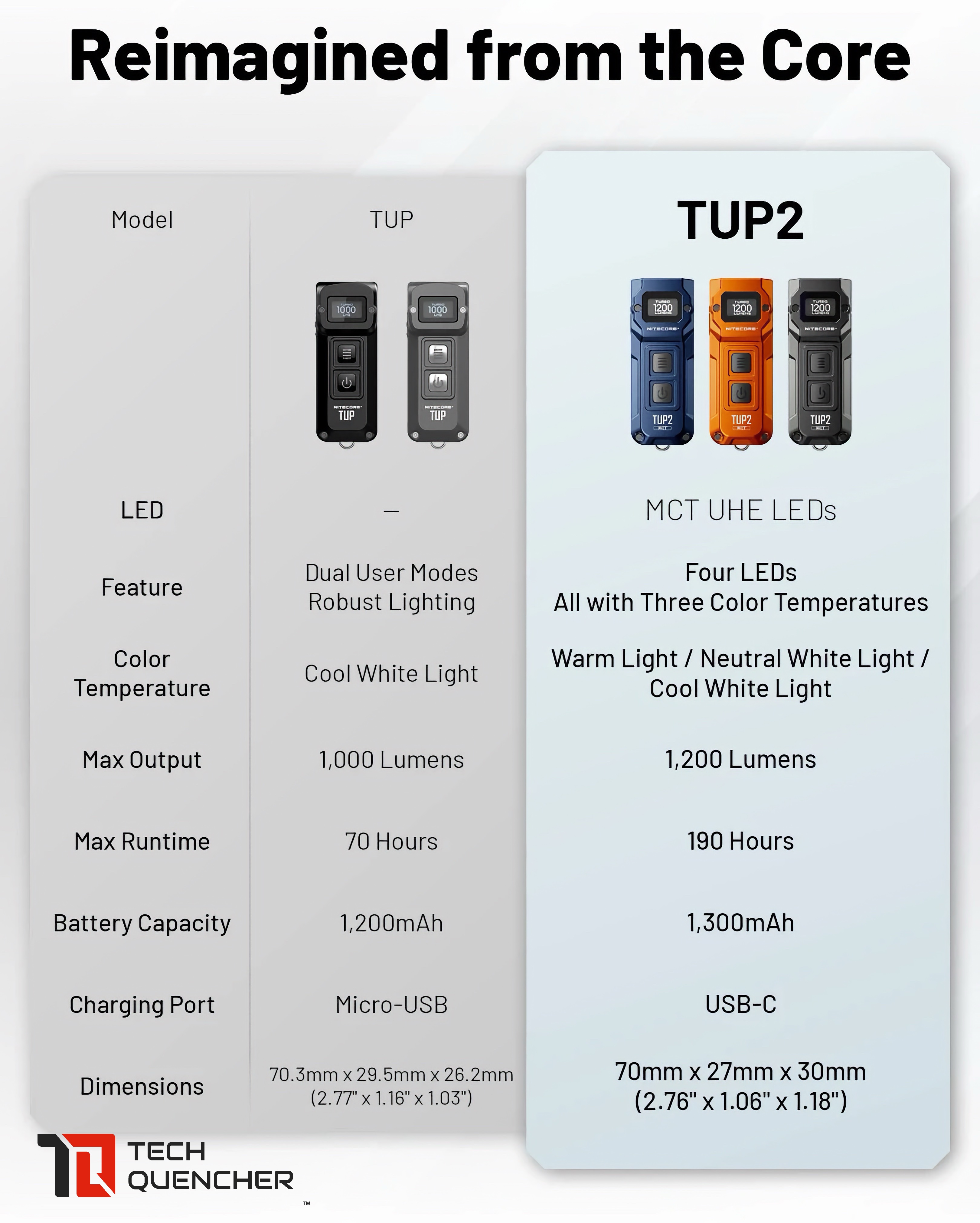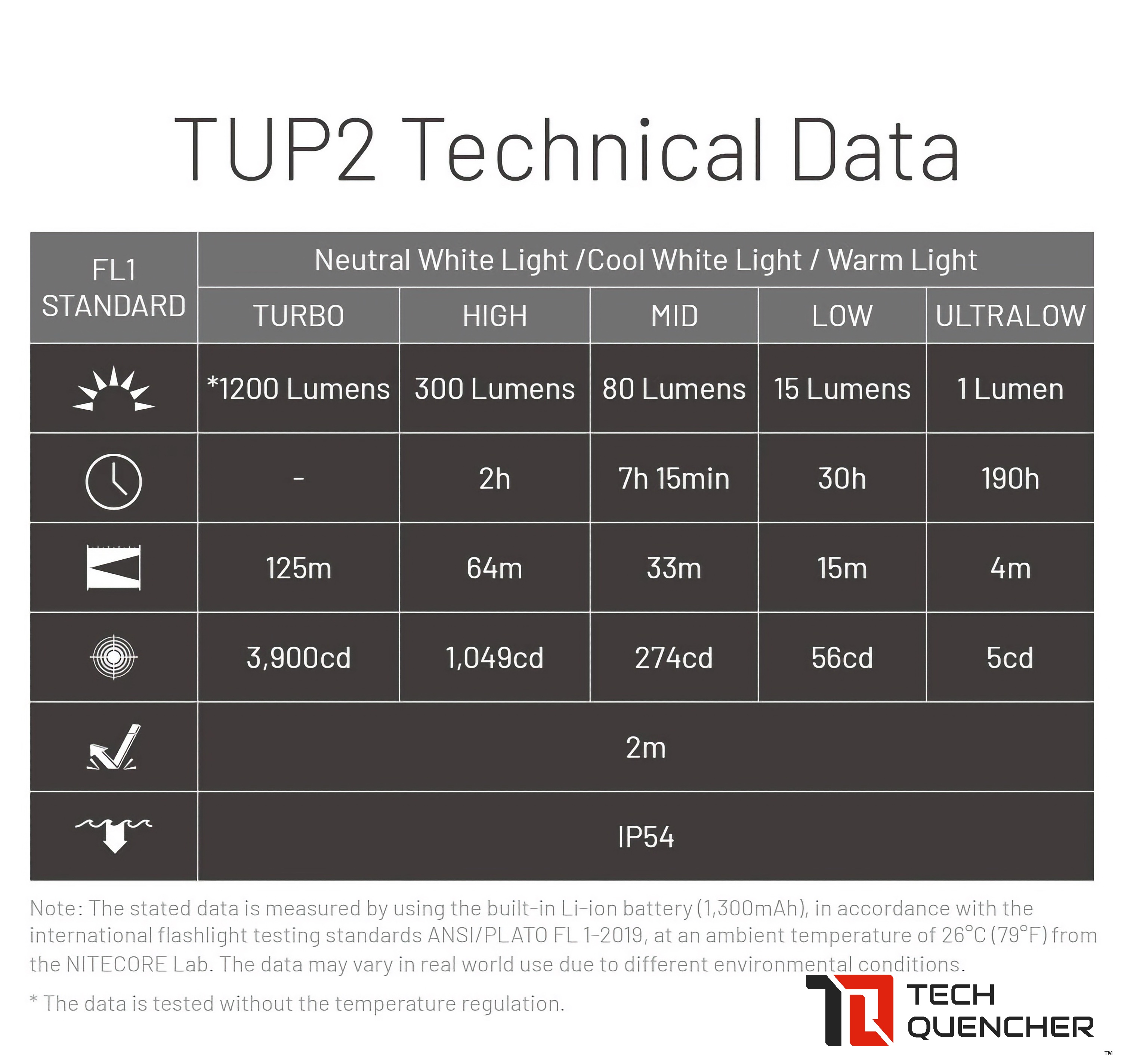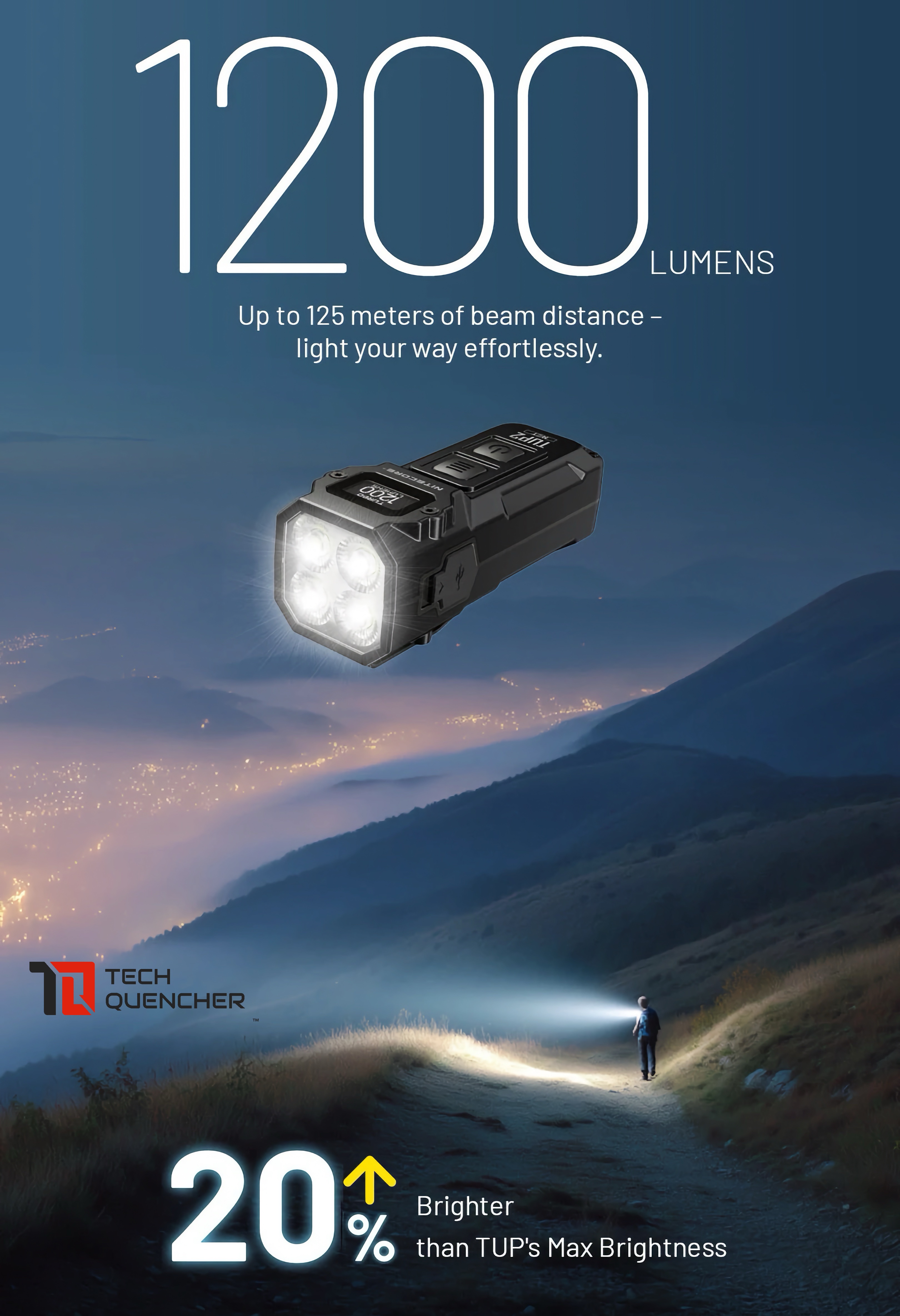***Packing high-tech and flashlight-level performance into a thumb-sized keychain light, the TUP2 offers 1,200 lumens, a 125-meter beam distance, and up to 190 hours of runtime – outperforming ordinary compact flashlights.