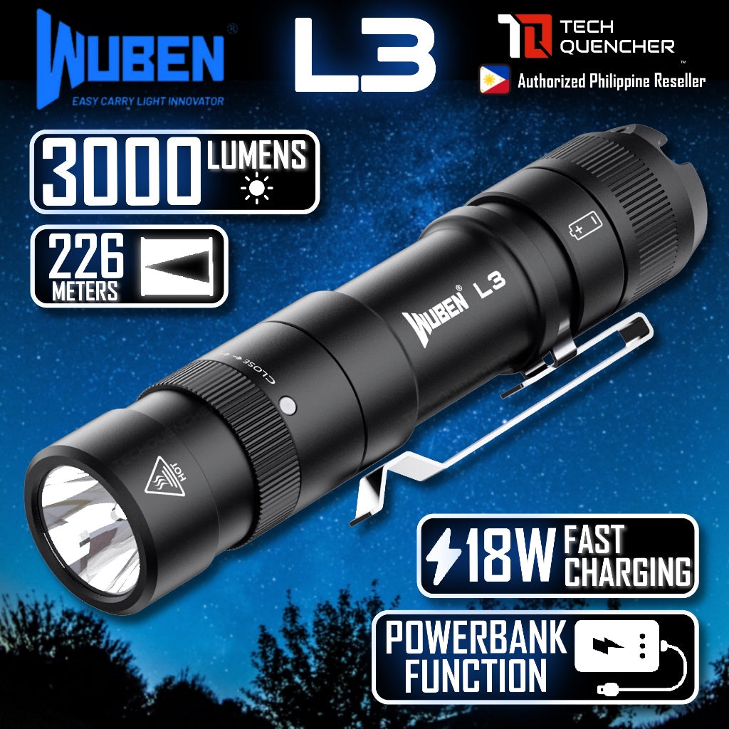 Wuben L3 Flashlight - 3000 Lumens - Powerbank Mode - USB-C Fast Charging 18W - 4800mAh Battery -IP68