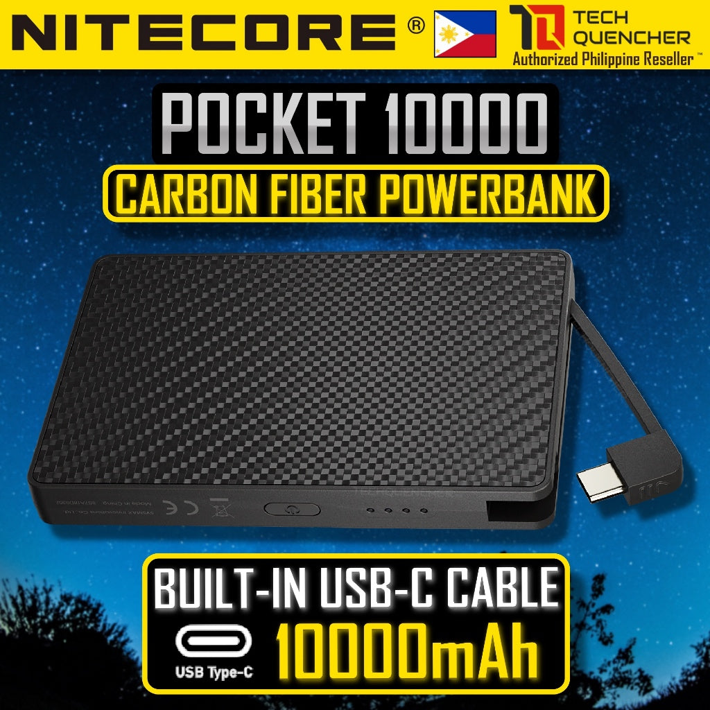 Nitecore Pocket 10000 - 10000mAh Powerbank + Built-In USB-C Cable - Carbon Fiber - 22.5w Max - IP65